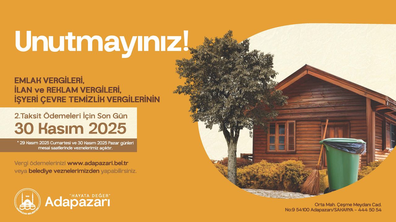 Adapazarı Belediyesi, vatandaşların işlemlerini sorunsuz ve hızlı bir şekilde gerçekleştirebilmeleri için hem dijital hem de yüz yüze hizmet vermeye devam ediyor. Yapılan açıklamada, vatandaşların gecikmeden dolayı cezalı duruma düşmemeleri için vergi ödemelerini zamanında yapmalarının önemi vurgulandı. Ödeme ve diğer detaylar hakkında bilgi almak isteyenler, Orta Mah. Çeşme Meydanı Cad. No:9 Adapazarı adresine gelerek görevlilere başvurabilir veya 444 50 54 numaralı telefondan iletişime geçebilirler.