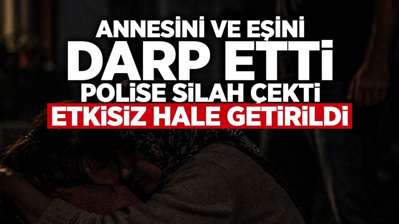 Adreste yapılan ilk incelemede, Tuncay E. (41) isimli şahsın eşi ve annesini darp ettiği belirlendi. Bu sırada şüphelinin, olay yerine gelen polis ekiplerine karşı tüfek teşhir ederek silahla hamlede bulunduğu öğrenildi.