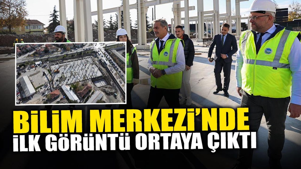 7 bin 500 metrekarelik alanda yükselen Bilim Merkezi’nde temel atma süreci tamamlanırken çelik konstrüksiyon imalatı devam ediyor.