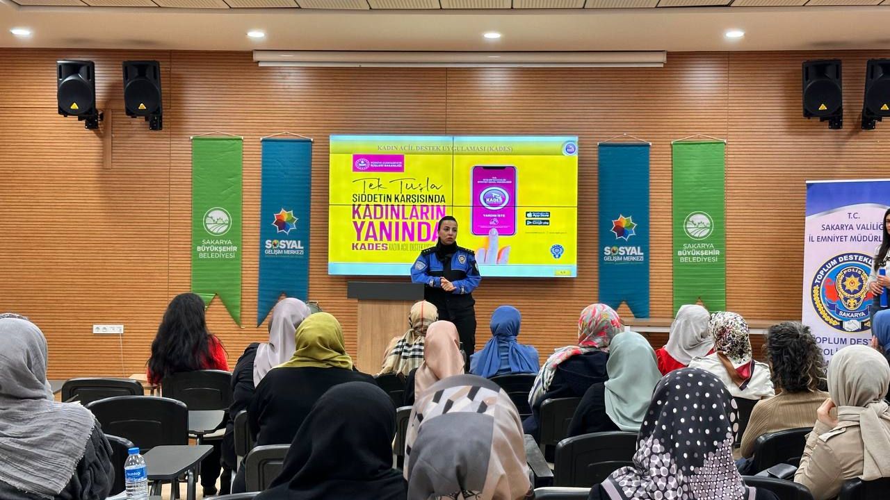Sakarya Büyükşehir Belediyesi ve İl Emniyet Müdürlüğü, 25 Kasım Kadına Yönelik Şiddete Karşı Uluslararası Mücadele Günü kapsamında Sosyal Gelişim Merkezi’nde (SGM) anlamlı bir farkındalık programı gerçekleştirdi.