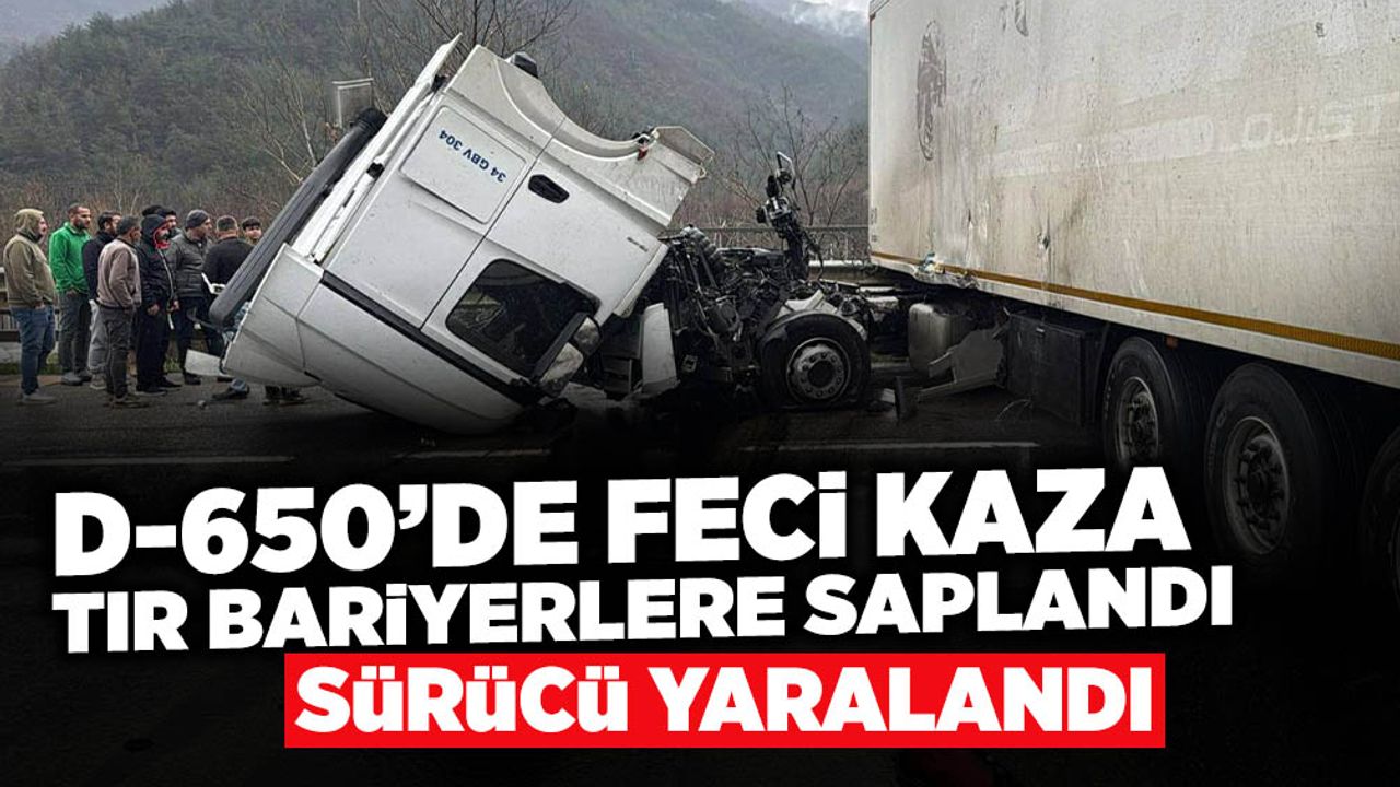 Edinilen bilgilere göre, yağış nedeniyle kayganlaşan yolda kontrolden çıkan bir tır, bariyerlere çarparak durabildi.