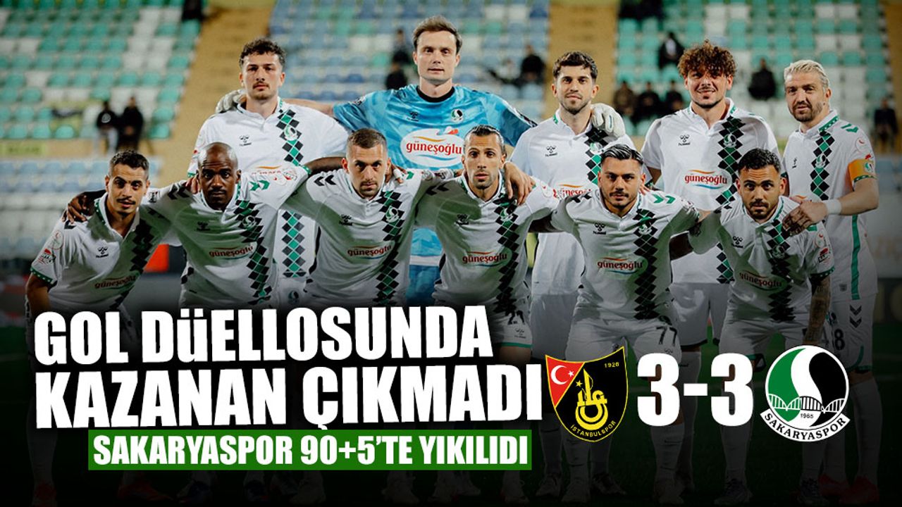 Maçın son anlarında heyecan doruğa çıktı. 90+4’te Zwolinski’nin golüyle Sakaryaspor 3-2 öne geçti. Ancak İstanbulspor, 90+5’te Ömer Faruk Duymaz’ın fileleri havalandırmasıyla mücadeleden 3-3 beraberlikle ayrıldı.