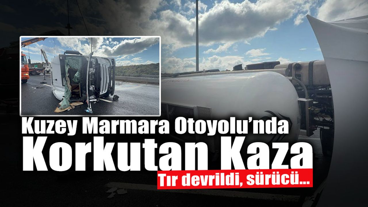 Otoyolun Yavuz Sultan Selim Köprüsü yönünde seyreden sürücüsünün ismi öğrenilemeyen 34 MIL 075 plakalı tır, Beykoz Riva mevkisinde kontrolden çıkarak bariyere çarptıktan sonra devrildi.