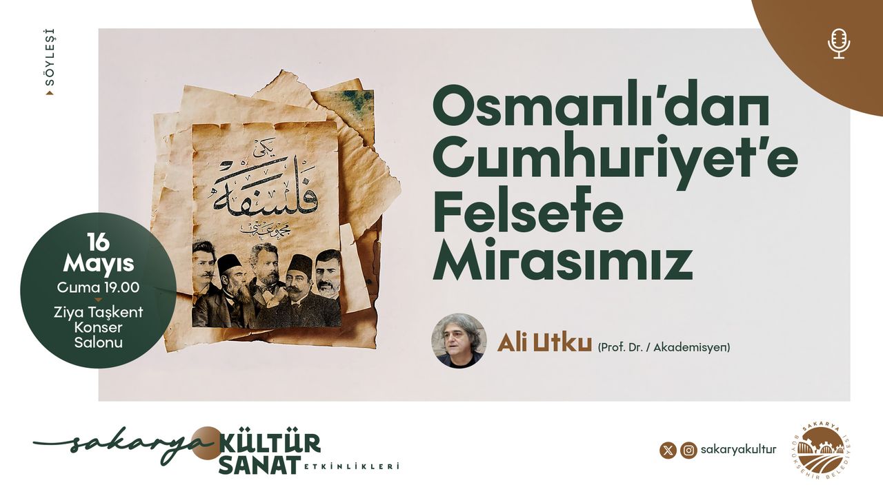 Sakarya Büyükşehir Belediyesi, Mayıs kültür sanat etkinlikleri tüm hızıyla devam ediyor. Bu kapsamda 16 Mayıs Cuma günü saat 19.00’da Ziya Taşkent Konser Salonu’nda gerçekleştirilecek söyleşide Prof. Dr. Ali Utku, ‘Osmanlı’dan Cumhuriyet’e Felsefe Mirasımız’ konusuyla sanatseverlerle buluşacak.