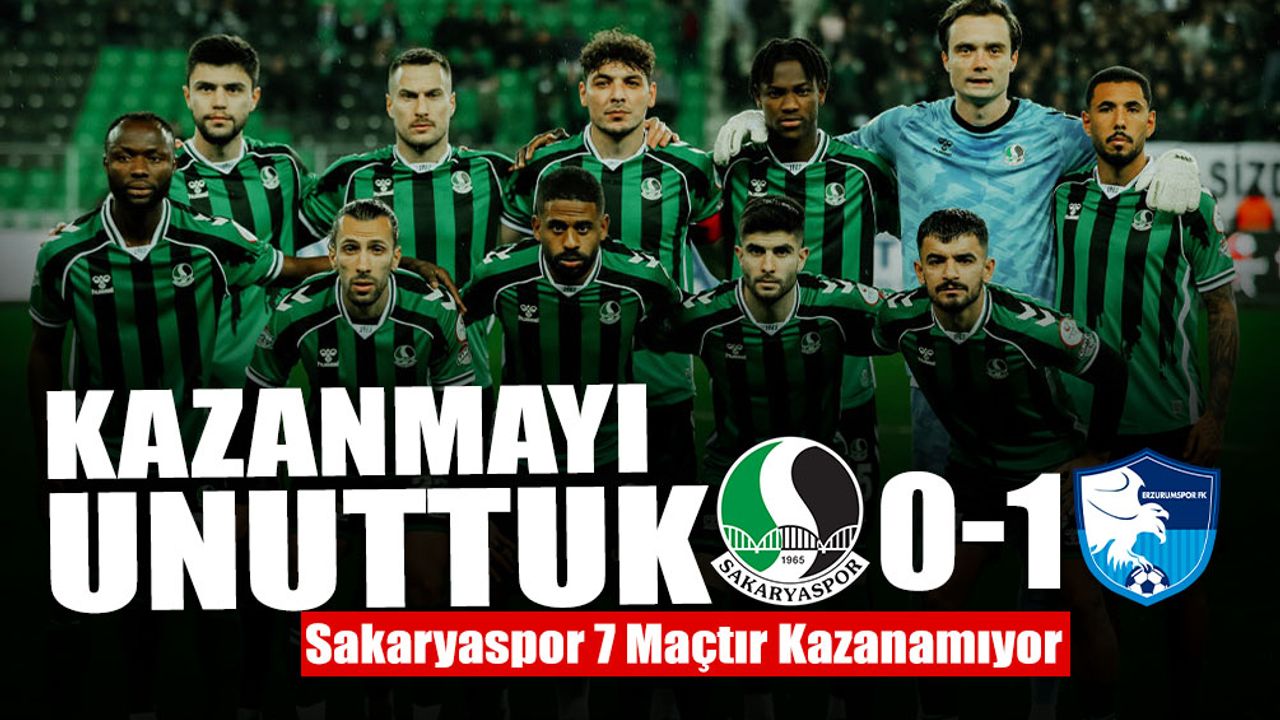 Bu sonuçla Sakaryaspor, sahasında Erzurumspor’a 1-0 mağlup olurken, galibiyet özlemini 7 maça çıkardı.