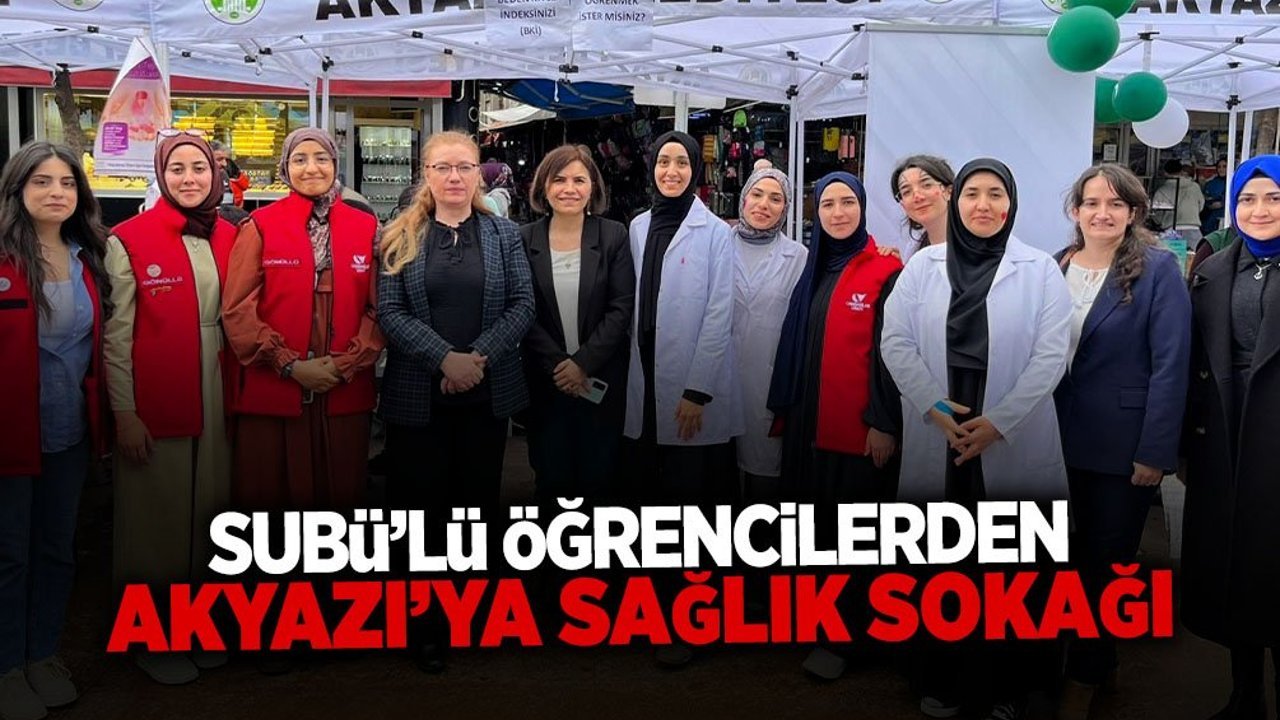 SUBÜ öğrencileri, Akyazı’da düzenlenen Sağlık Sokağı Etkinliği ile vatandaşlara sağlık taraması yaptı ve bilgilendirmelerde bulundu.