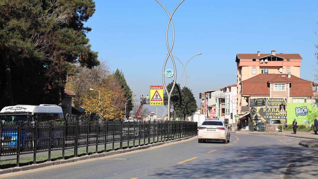 Şehrin giriş güzergahı niteliğinde olan caddede, yayaların yalnızca kendileri için belirlenen noktalarda karşıdan karşıya geçmesi için refüje ferforje imalatları yapıldı.