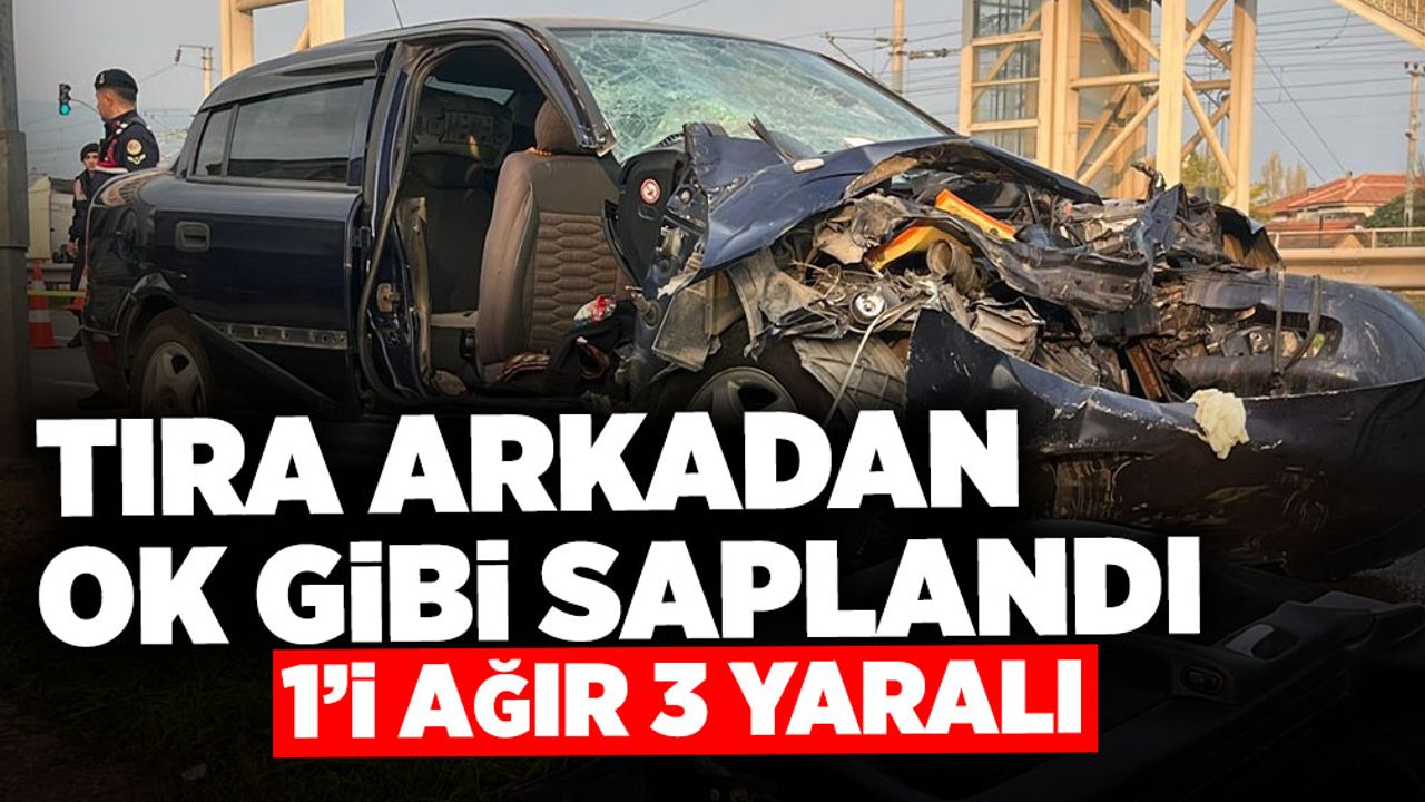 D-650 kara yolu Bilecik istikameti Mekece mevkisinde M.A.K. (60) yönetimindeki 11 SD 324 plakalı otomobil, emniyet şeridinde park halindeki M.A. (52) yönetimindeki 41 AOL 229 plakalı tırın dorsesine arkadan çarptı.